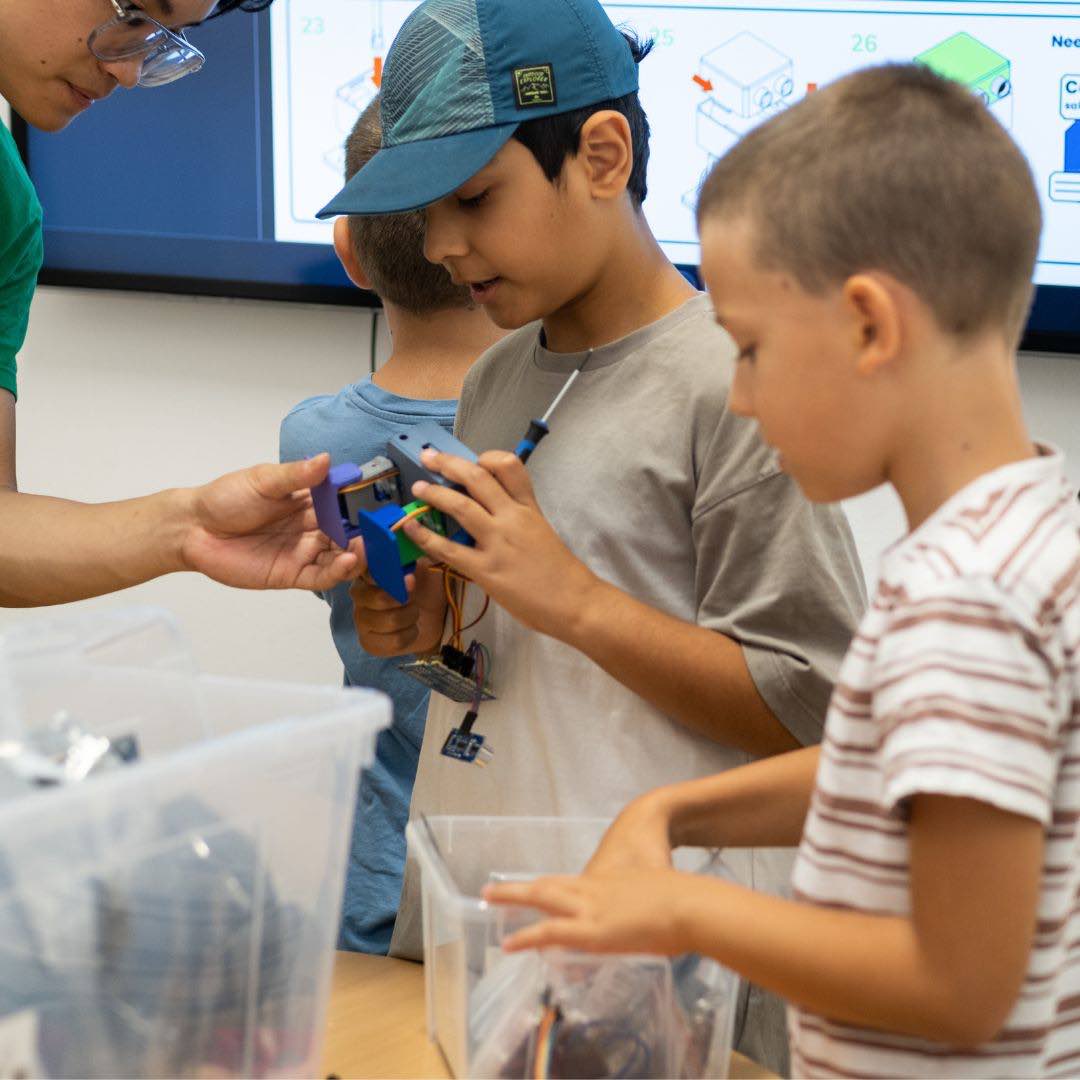 Kinder zeigen echte Projekte aus dem Unterricht – vom blinkenden Stromkreis bis zum programmierten Roboter.